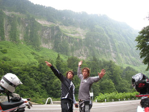 左に見える「称名滝」は落差350m 隣が500mだそうです。